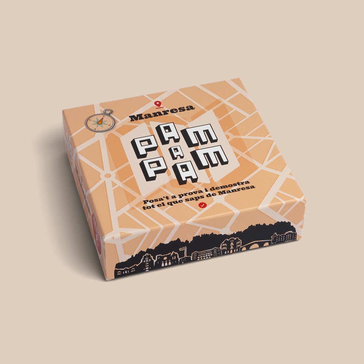 El joc de taula de Manresa posa a prova el coneixement i l’esperit dels manresans amb preguntes, mímica i dibuixos sobre art, cultura i natura de la ciutat. Pensat per a 4 jugadors o més i amb una durada d’uns 40 minuts, es pot jugar en equip o de manera individual, ideal per a trobades amb amics o nits de jocs en família.